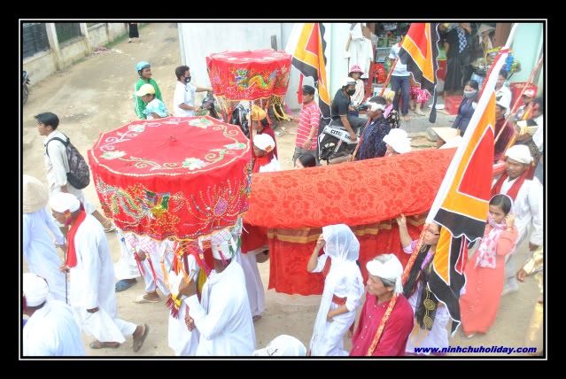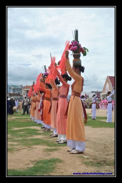 Theo phong tục của người Chăm mọi người con đều được sinh ra từ mẹ, cho dù người đó có là Vua, Tướng ... Chính vì vậy hàng năm cộng đồng người Chăm làm lể rướt Y Trang cho Ngài ( Mẹ xứ sở) trước, ngày hôm sau mới là lể ở các Tháp. Sau khi đã rướt lể Y Trang là đến phần hội bao gồm ca múa, các hoạt động thể thao khác của các thanh niên, thiếu nữ ở các làng. Thường người Chăm họ không bao giờ thờ ở trong nhà vì vậy đến ngày này họ thường cúng để tưởng nhớ ông bà, cha mẹ mà thôi, khách được mời đến dùng cơm là gia đình họ rất quý. Ngôi đền chuẩn nghi thức rướt Y Trang Kiệu rướt Y Trang cho Ngài Cờ, Lộng... ---------- Post added at 01:11 AM ---------- Previous post was at 01:11 AM ---------- Đúng giờ đoàn rướt Y Trang bao gồm các Cả Sư, Phó Cả Sư, các Thầy và đoàn tùy tùng di chuyển đến điểm hẹn với người Raglai để làm thủ tục giao Y Trang. ---------- Post added at 01:12 AM ---------- Previous post was at 01:11 AM ---------- Tại khu vực ngay ngã ba đường sớm đã có một số chức sắc và người Raglai đã chuẩn bị Y Trang và các lể vật dâng lên Ngài. Đoàn rướt Y Trang chuẩn bị đến điểm hẹn Giao lưu văn hóa Sau khi đoàn rướt Y Trang đã đến nơi, họ bắt đầu làm lể giao Y Trang trong tiền kèn, mã la, trống, chiên và những vũ điệu thật tuyệt ---------- Post added at 01:12 AM ---------- Previous post was at 01:12 AM ---------- Rất đông bà con, báo đài , khách du lịch cùng tham gia lể hội . ---------- Post added at 01:13 AM ---------- Previous post was at 01:12 AM ---------- Sau khi đã hoàn tất các thủ tục, đoàn rướt Y Trang quay về lại ngôi đền sau khi đi vào sân vận động Hửu Đức với sự trong đợi của các quan khách, du khách, bà con ... Người Raglai họ gùi những lể vật đi theo đoàn về đền Đoàn đã vào đến sân vận động nơi diễn ra những nghi thức mừng đón Ngài. Đoàn đi vòng qua sân sận động sau đó đoàn về thẳng ngôi đền, theo phong tục là để Ngài nghĩ ngơi ---------- Post added at 01:15 AM ---------- Previous post was at 01:13 AM ---------- Trong đoàn rướt Y Trang di chuyển cũng là lúc các Vũ Công, Nhạc Công và các ca sĩ họ hát về những bài hát ca ngợi về công đức của Ngài ( Bà Mẹ Xứ Sở) và rất nhiều bài hát Chăm khác. ---------- Post added at 01:17 AM ---------- Previous post was at 01:15 AM ---------- Nhìn thấy nét trầm ở mỗi vũ công, nhạc công và người hát. Và vũ điệu kết thúc chương trình rướt Y Trang tại làng Hửu Đức. ---------- Post added at 01:18 AM ---------- Previous post was at 01:17 AM ---------- Tháp đêm rực sáng chuẩn bị cho chương trình ngày 7/10 Mượn hình CPRdotNET. Tết của người Chăm, không khác gì tết người Việt... Tập trung chiến hữu và vào tiệc Cập nhật hình sau!